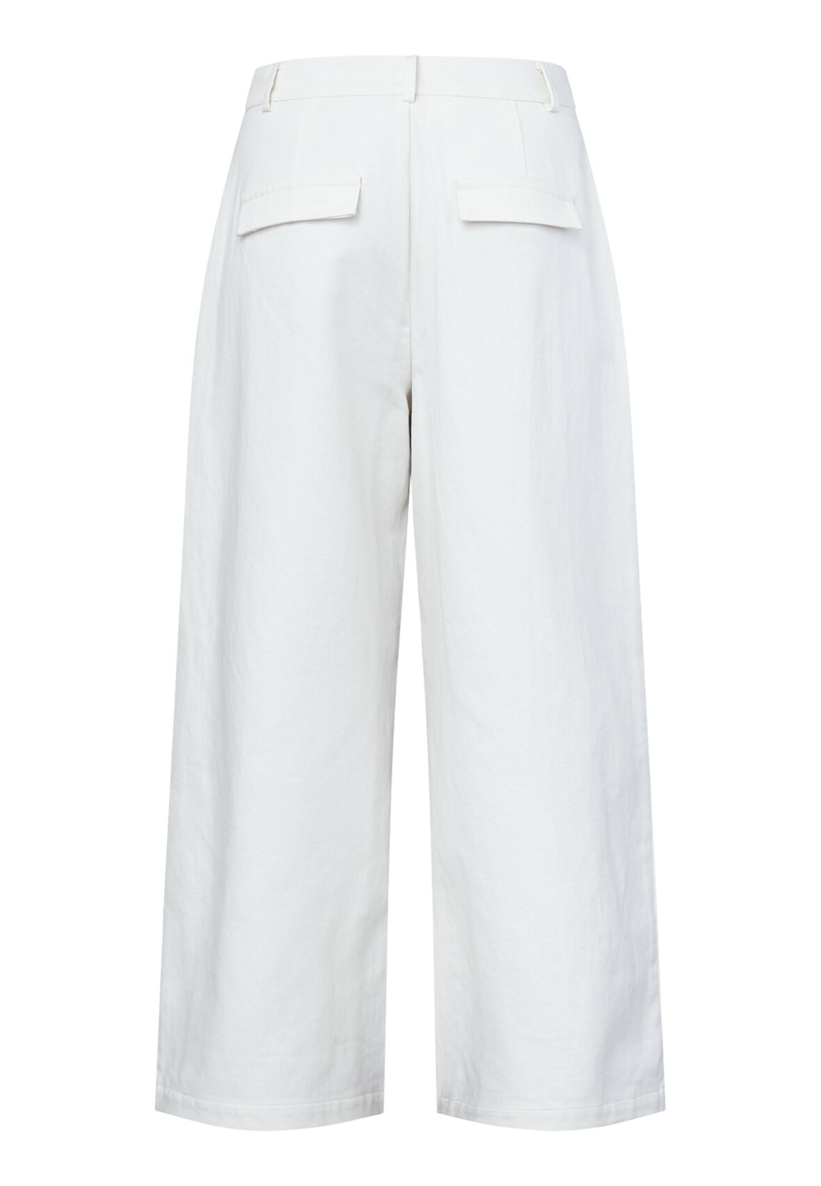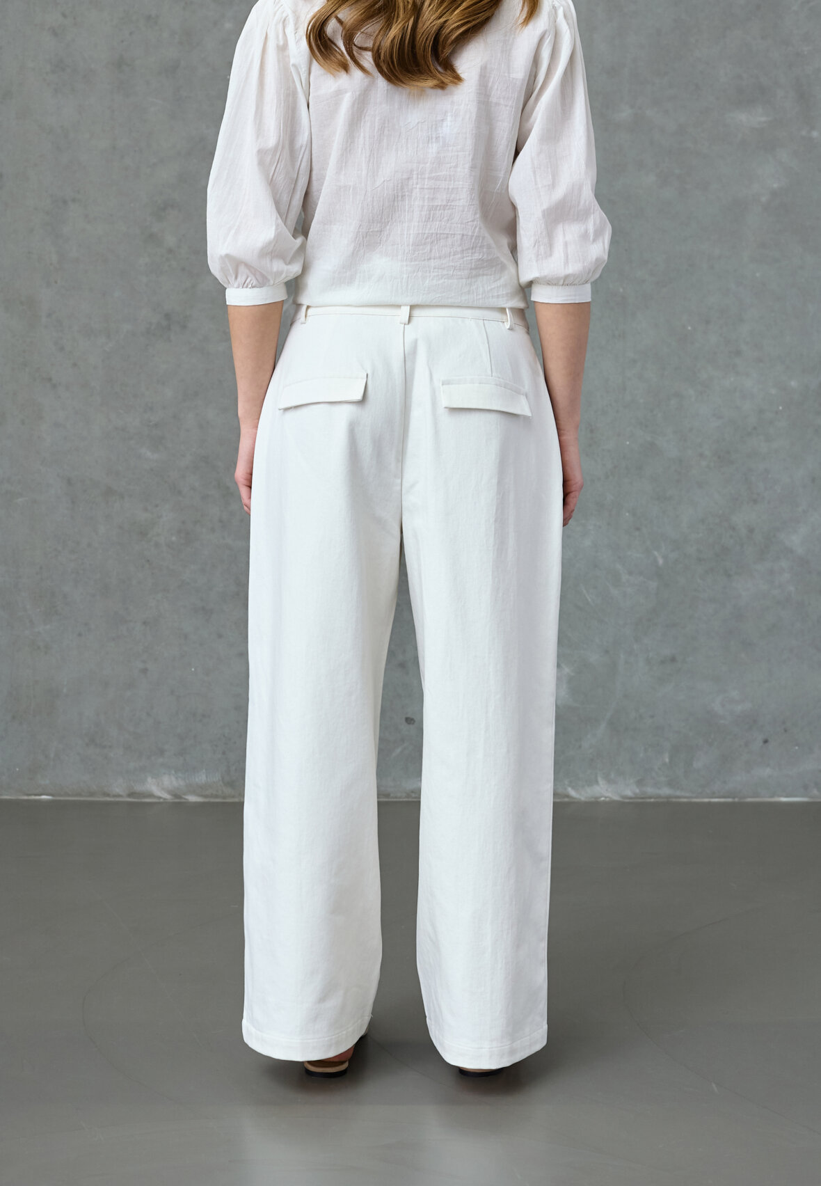 love1534 er en wide-leg buks med en high-waist silhuet. Designet har påsatte lommer foran med kontrast-stikninger. Modellen har en str. S på og er 175 cm høj.