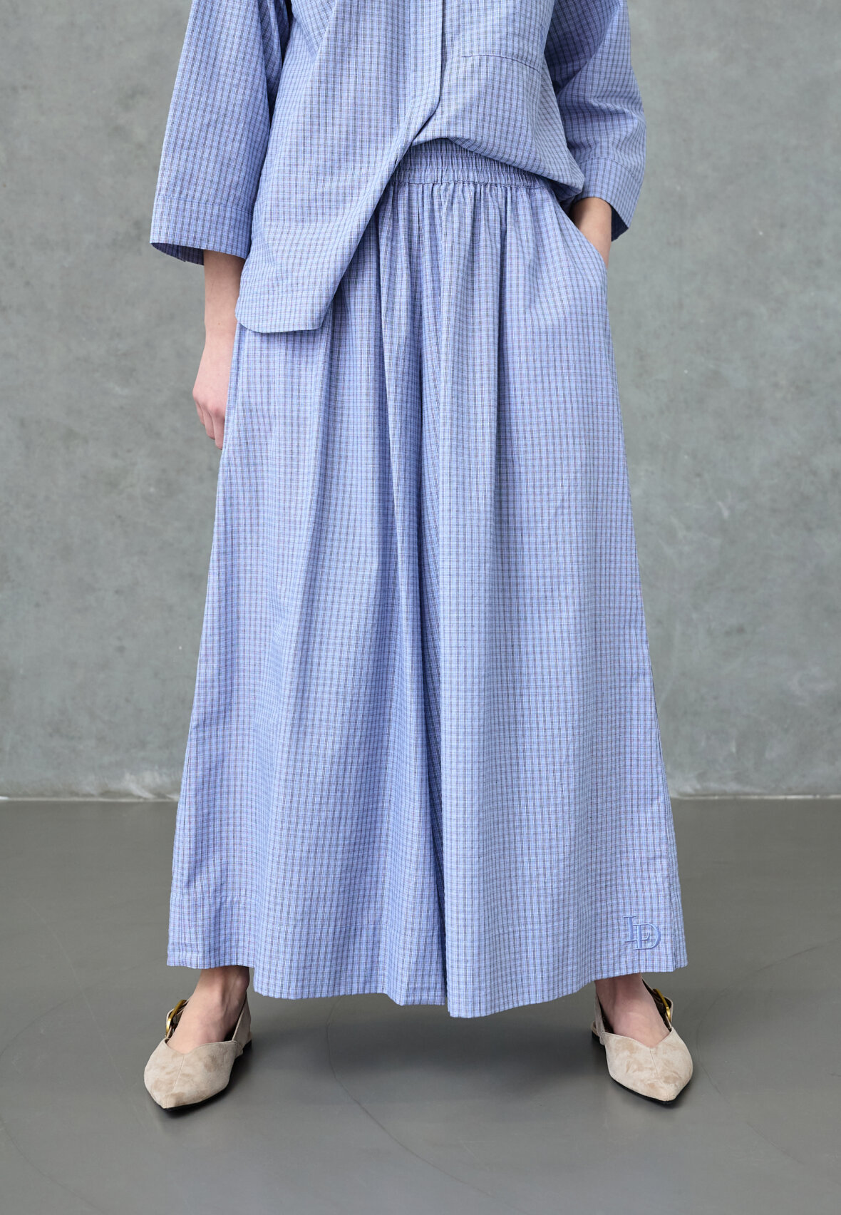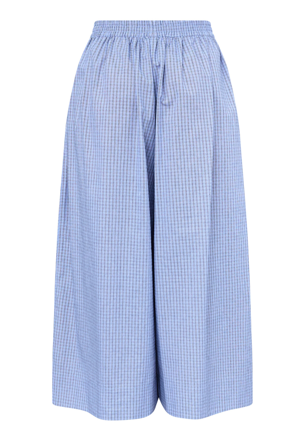 love1522 er en wide-leg buks med high-waist pasform. Buksen har en elastisk talje, sidelommer og micro-check mønster. Modellen har en str. S på og er 175 cm høj.