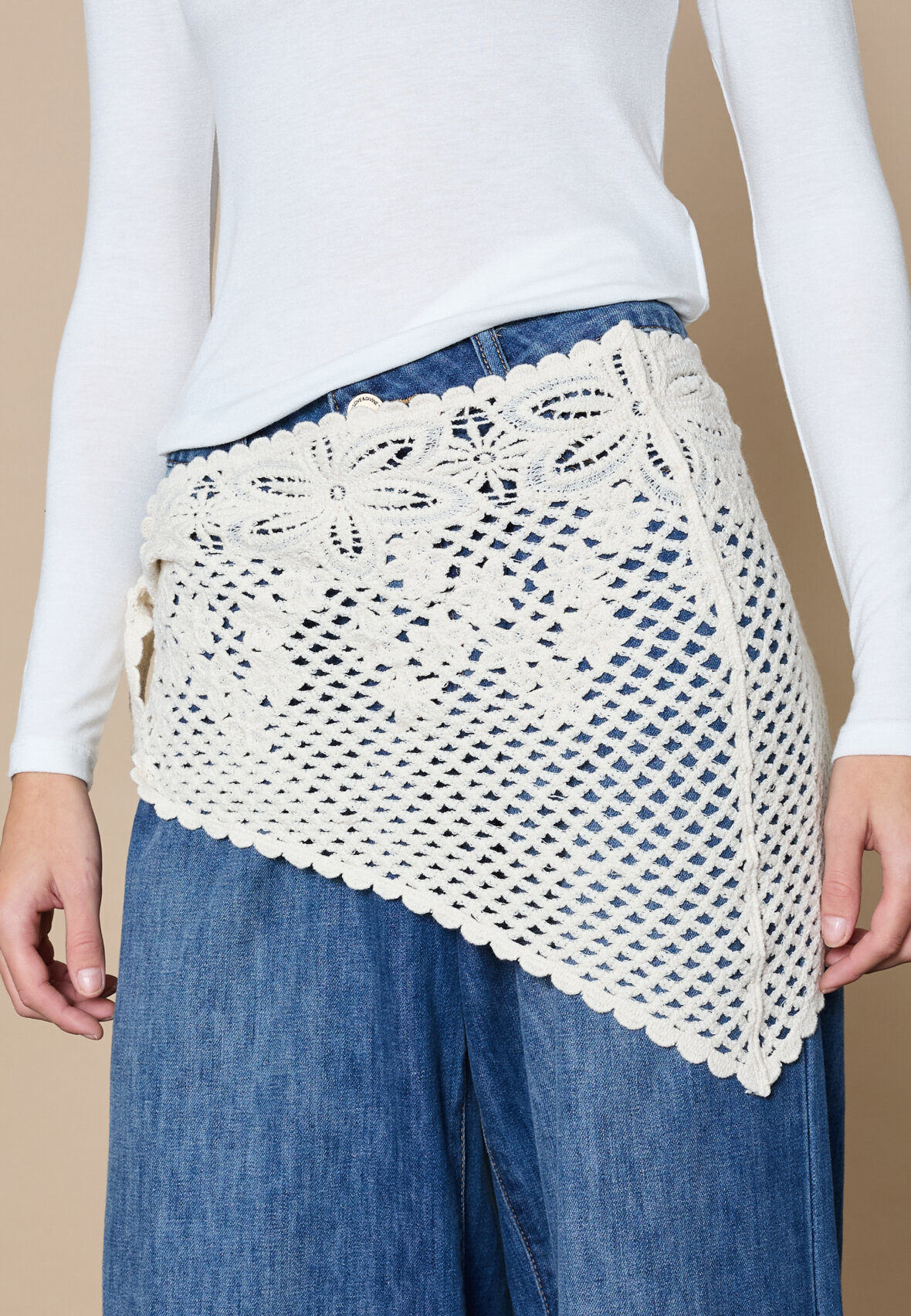 love1500 is a crochet scarf that is designed to be worn at the waist, around the neck or as a head covering. The scarf is one size.