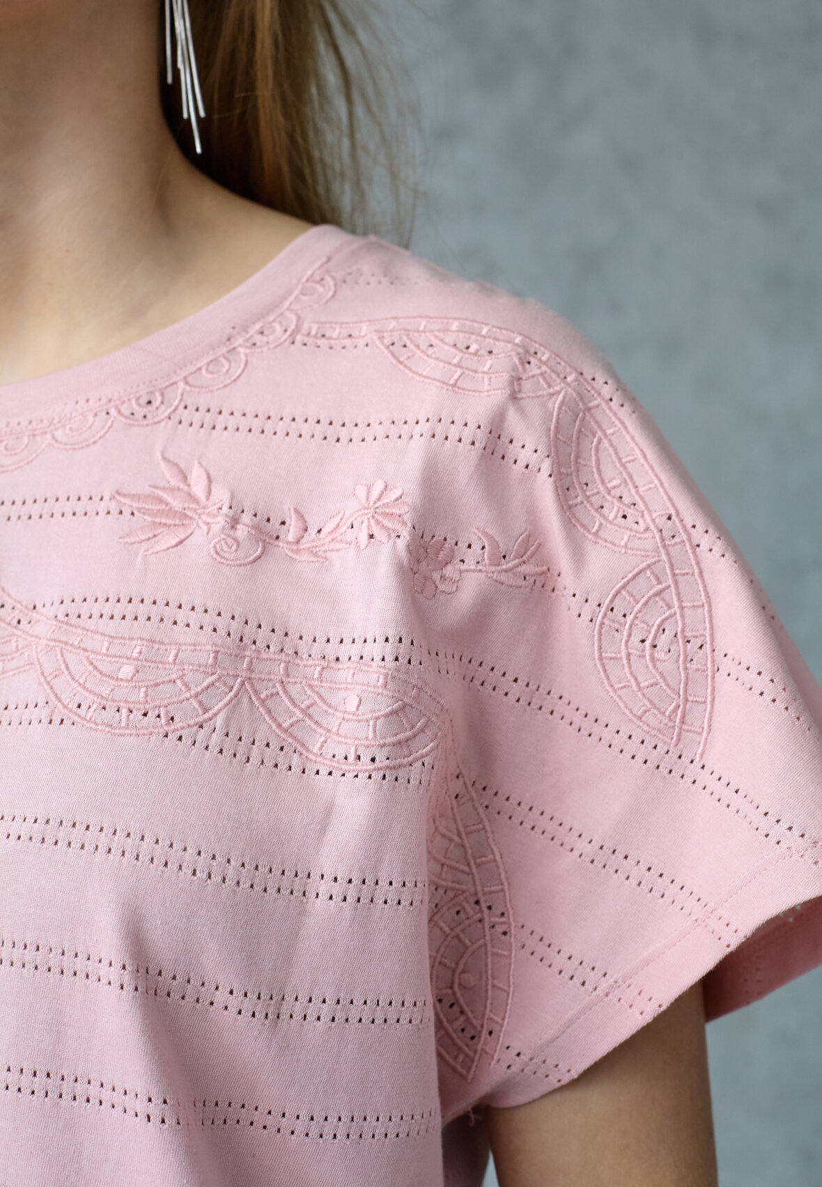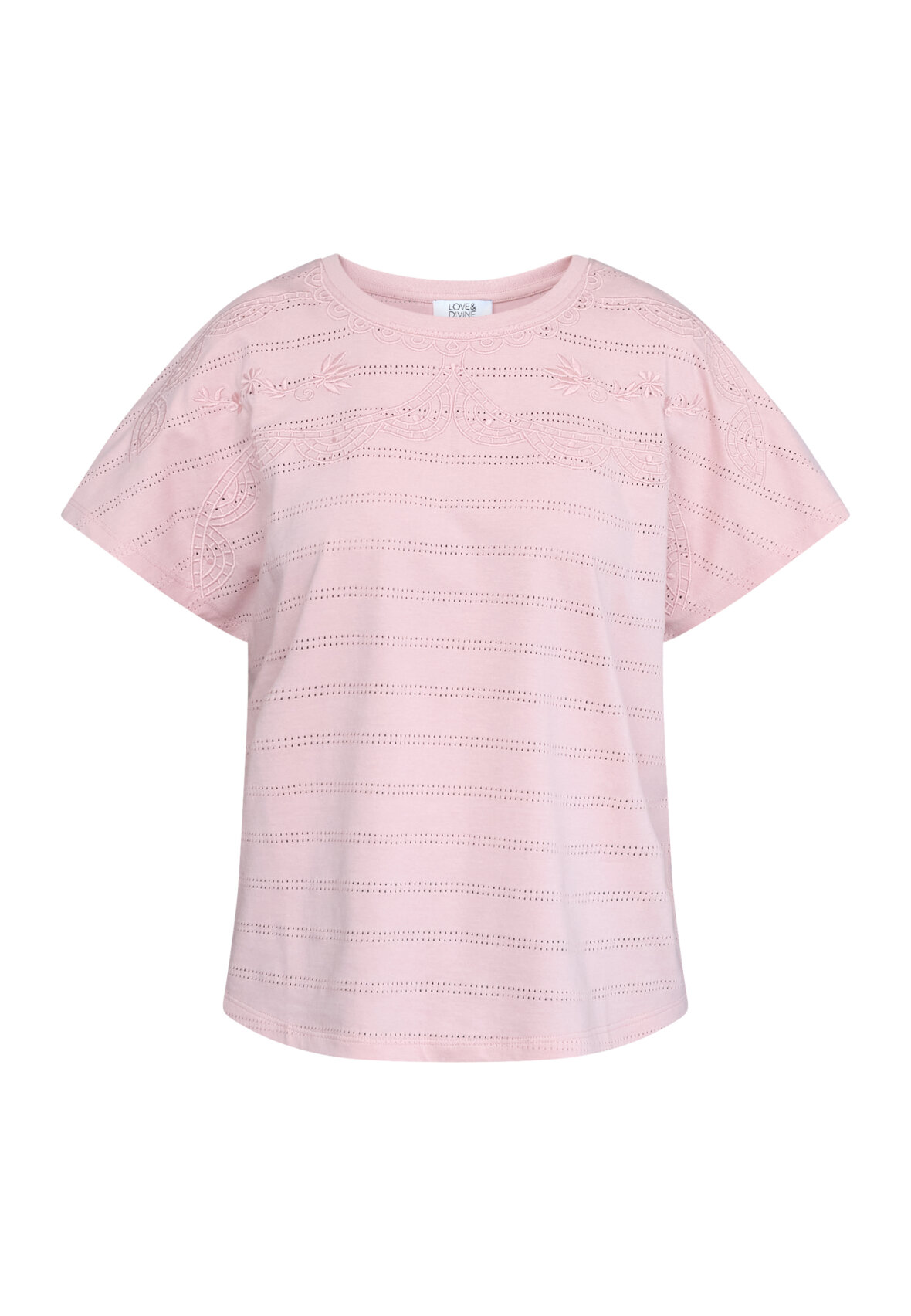 love1533 is a t-shirt in cotton quality with a relaxed fit. It has fine details with embroidery. The model is wearing a size S.