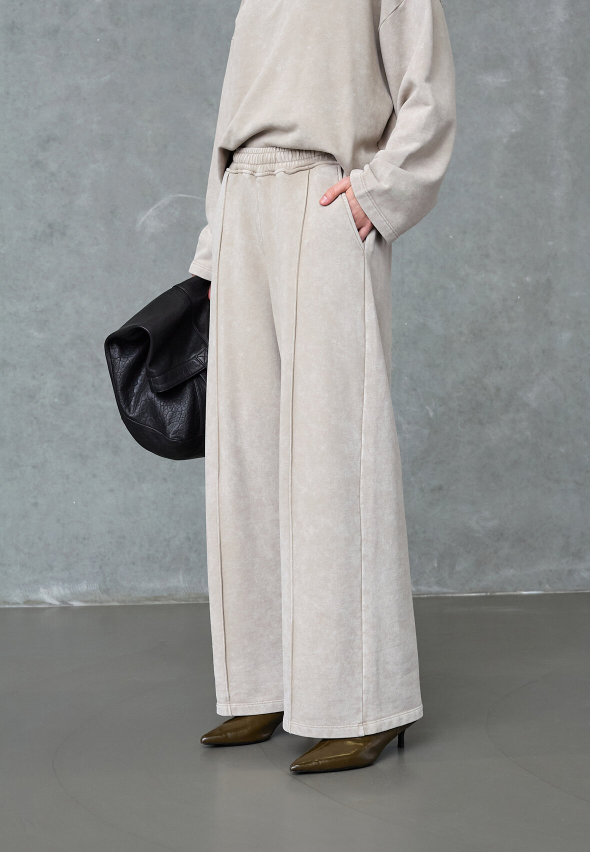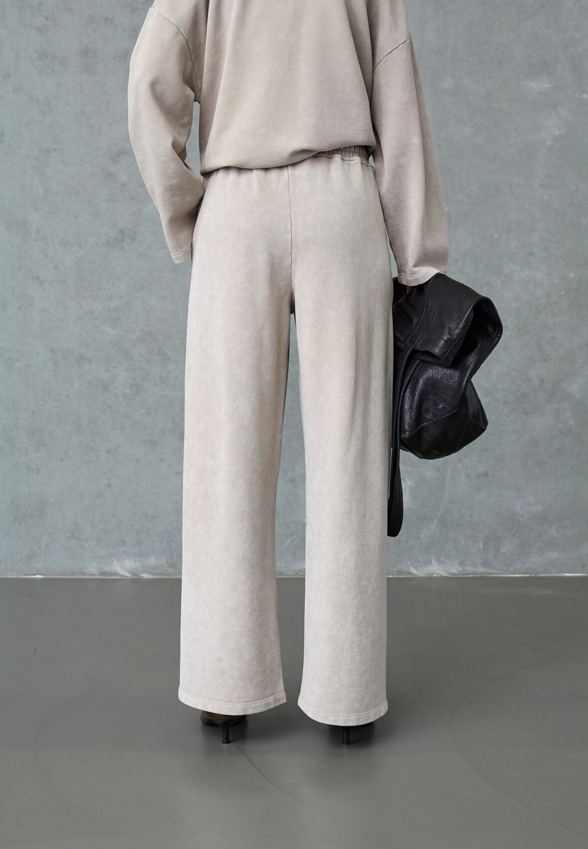 love1573 is an elegant wide-leg trouser in soft washed jersey with a high-waist fit. The design features stylish pintucks and an elastic waist for ultimate comfort and a modern, relaxed look. The model is wearing a size S.